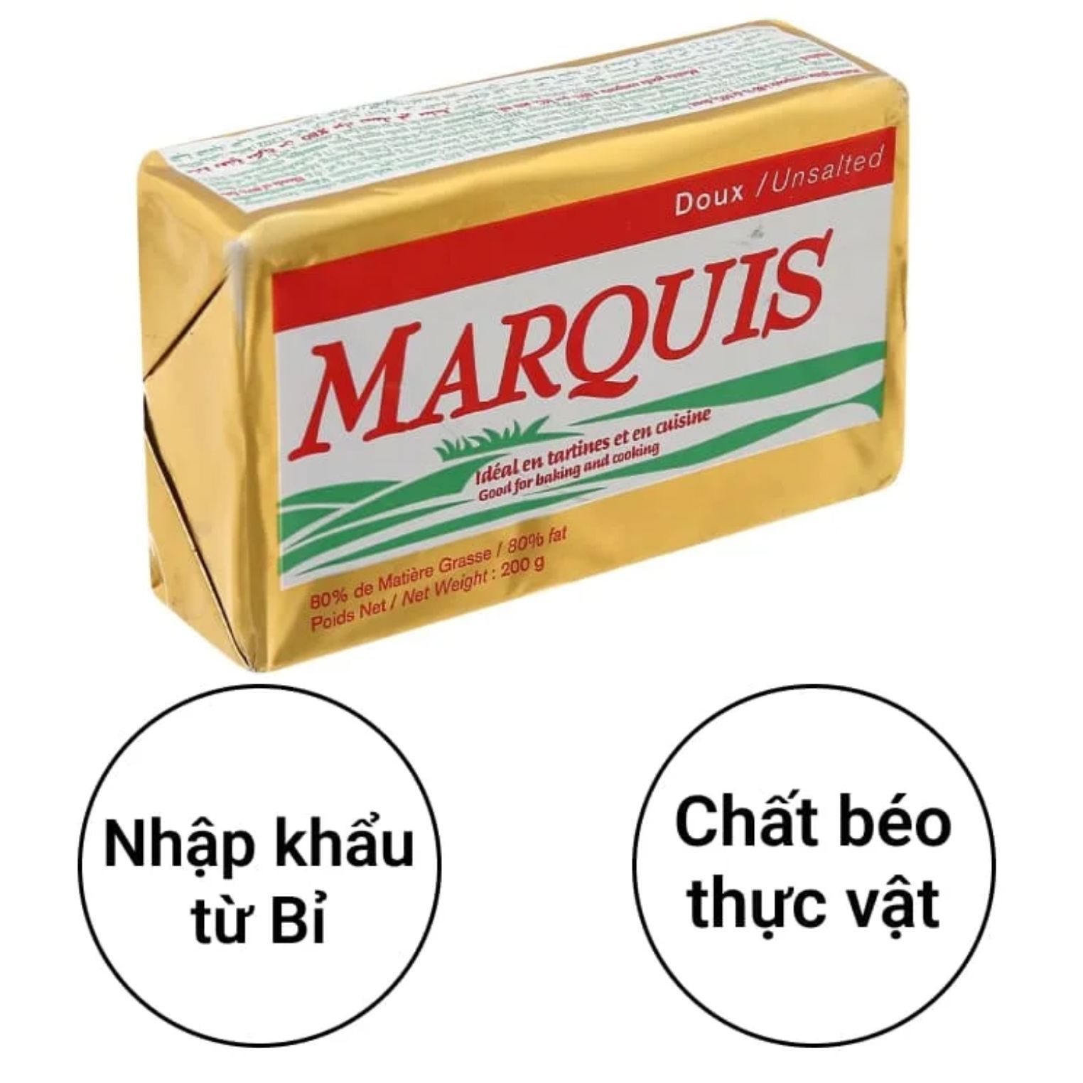 Bơ lạt Marquis Elle & Vire 80% béo là sản phẩm đến từ Pháp. Bơ được sản xuất theo công thức đặc biệt mang lại hương vị đặc trưng thơm ngậy của sản phẩm chế biến từ sữa. Sản phẩm rất dễ ăn, phù hợp với mọi lứa tuổi.
